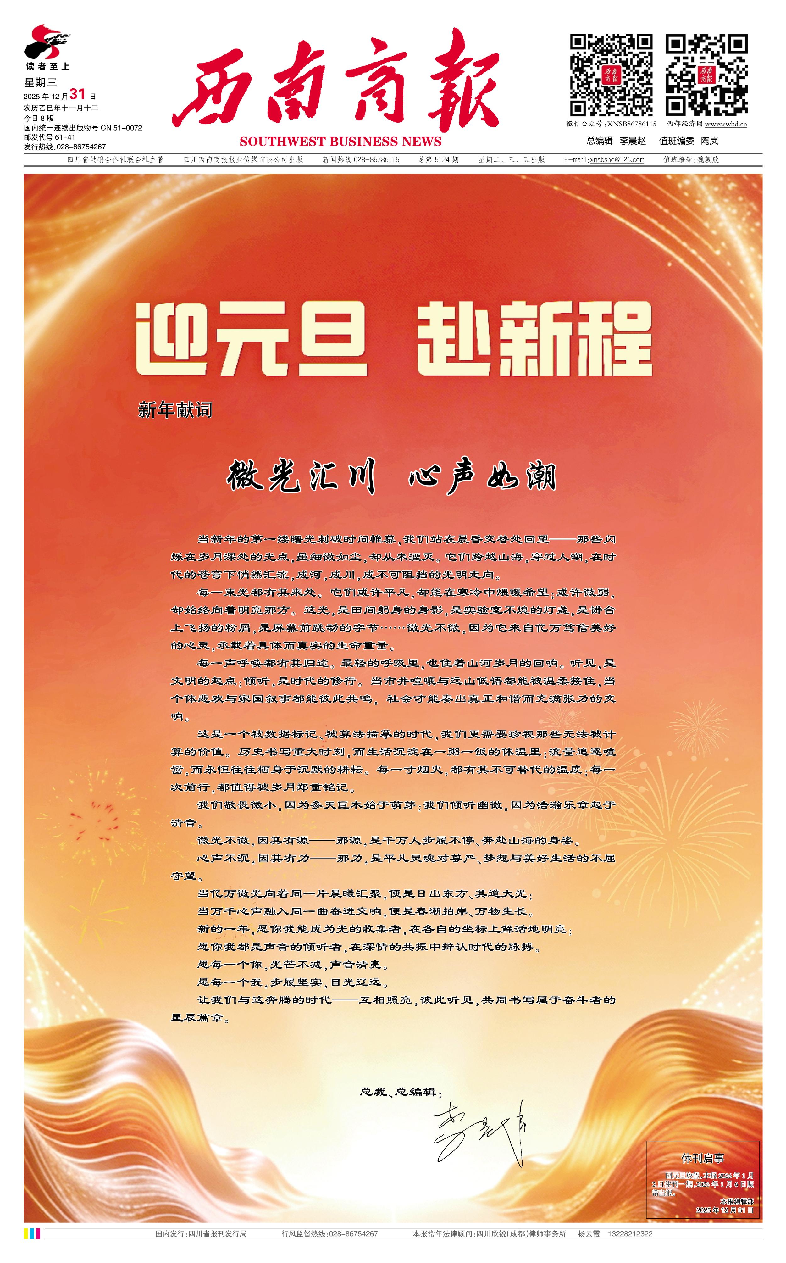 Copyright◎2025 All rights reserved. 互联网新闻信息服务许可证:51120230003 版权所有:四川西南商报报业传媒有限公司 川公网安 备5101052014764号 蜀ICP备19038715号