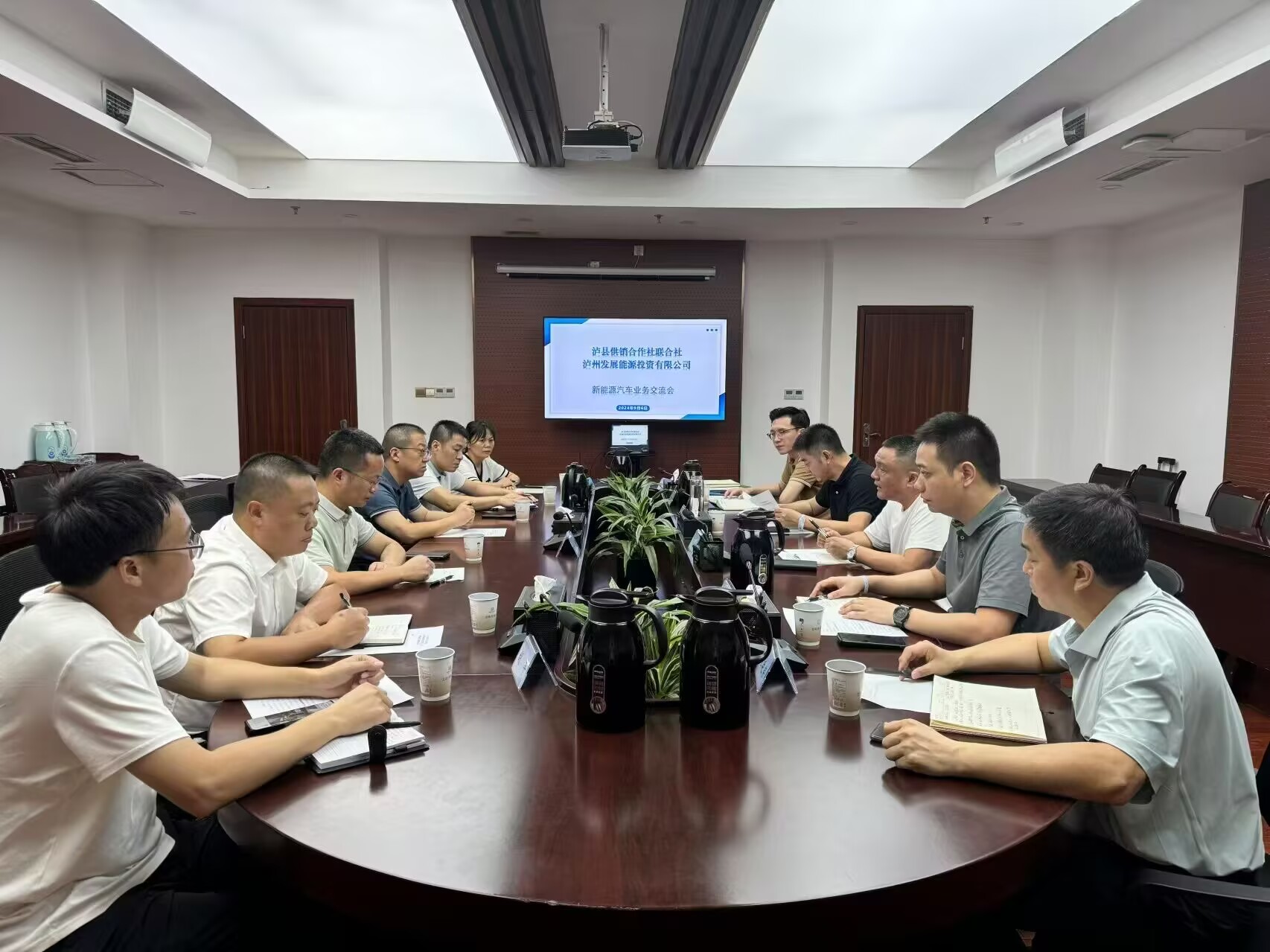 近日,泸县供销社与泸州发展能源投资有限公司开展新能源汽车业务交流会。此次交流会旨在探讨双方在新能源汽车领域的合作机遇,共同推动新能源汽车的普及和发展。参加本次交流会的有泸县供销社领导班子、蜀南公司负责人以及泸州发展能源投资有限公司的高层管理人员和技术专家。双方就新能源汽车的市场前景、政策支持、技术创新、运营模式等方面进行了深入的交流和探讨。